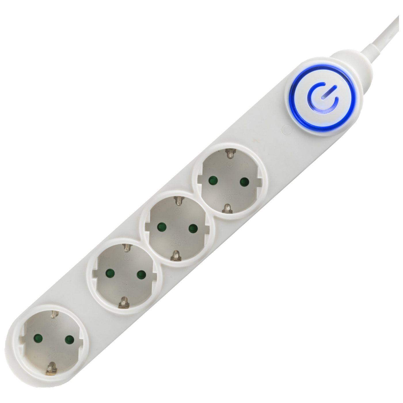 Produžni kabel sa prekidačem, 4 utičnice, H05VV-F 3G, presjek kabela 1,5mm², dužina 5 met, boja bijela