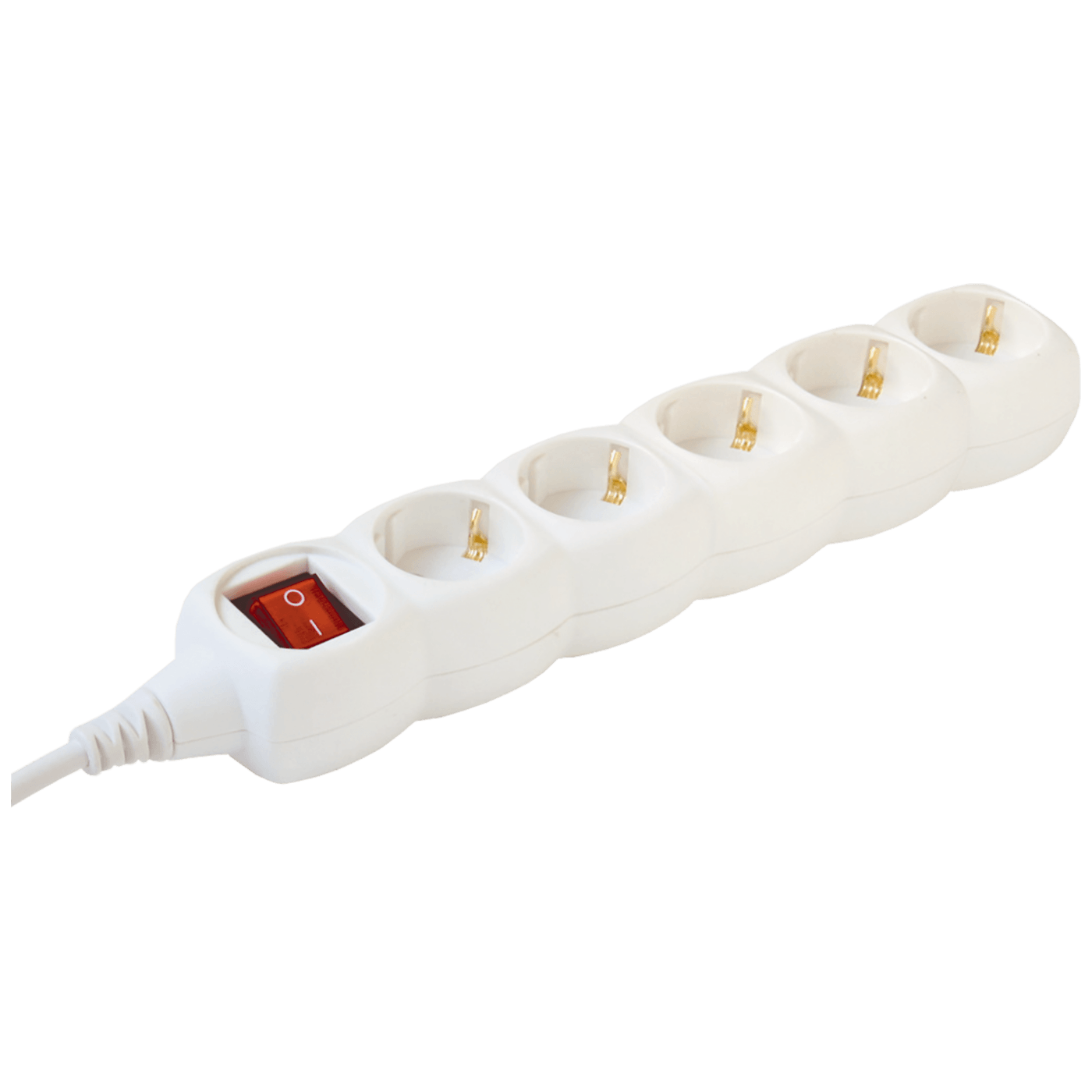 home Produžni kabl, 5 utičnica, prekidač, 1.5mm², 3 met, bijeli - NV 5K-3/WH/1.5