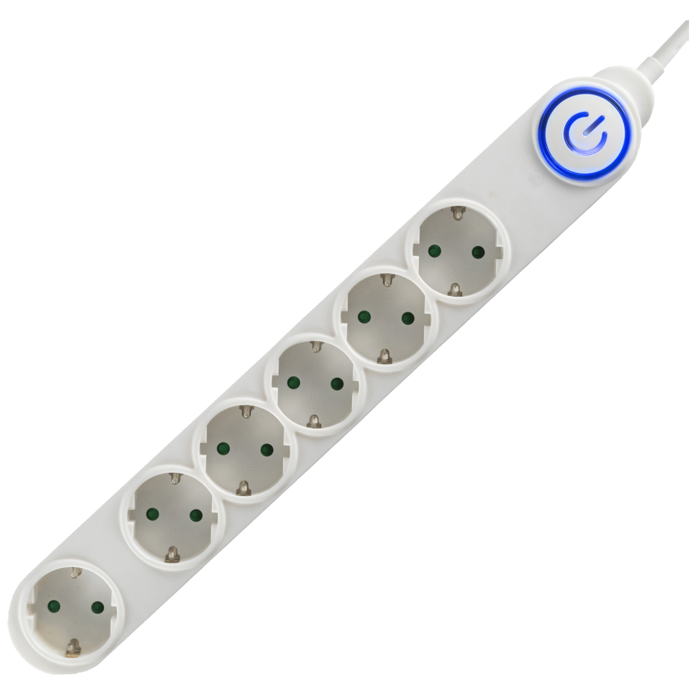 Produžni kabl sa prekidačem, 6 utičnice, presjek kabla 1,0mm², IP20, 250 V~ / 16 A / 3500 W, dužina 1,5 met, boja bijela
