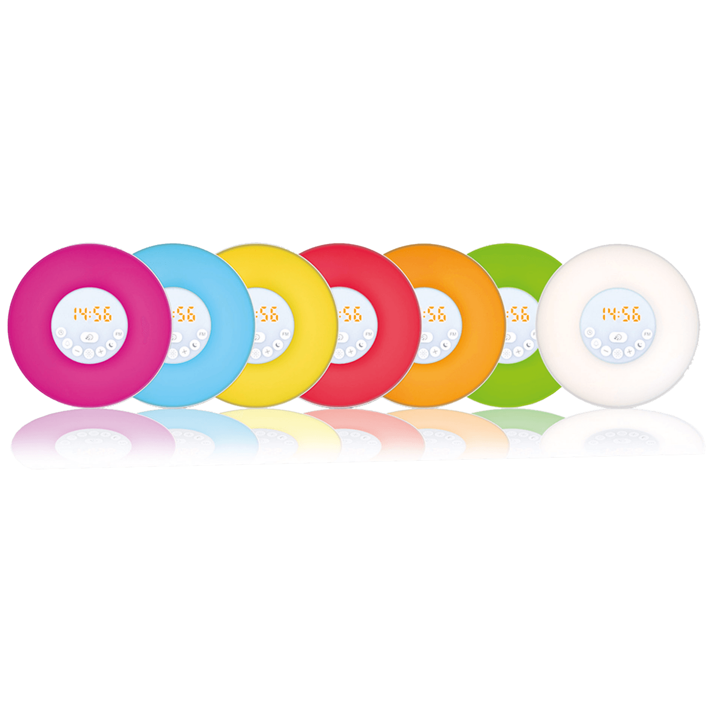 Sat vas budi blagim zvučnim i svjetlosnim efektom, simulirajući izlazak sunca koja započinje 30 minuta prije alarma. Također vam pomaže da zaspite s 30-minutnim efektom zalaska sunca. Zvukove alarma možete odabrati po želji i ponavljati ih svakih 5 minuta pomoću funkcije odgode. Zvukovi alarma: zvukovi prirode (ocean, ), poznate melodije (klavir, violina), radio ili bip-bip. Zaslon sa amber osvjetljenjem koji se može isključiti, s podesivom svjetlinom, 12 / 24 satni prikaz, prikaz frekvencije i pohrane, noćna svjetlost, topo bijela boja s podesivom svjetlinom, ručna ili automatska promjena RGB LED svjetla, automatska pretraga i spremanje FM radio postaja, dodirne tipke na prednjoj ploči, napajanje USB adapter s microUSB kablom (~ 1,2m), u slučaju nestanka struje, memorija se može osigurati s 3 x AAA (1,5V) baterijama ( nisu uključene u pakiranje ), dimenzije 170 x 165 x 130 mm