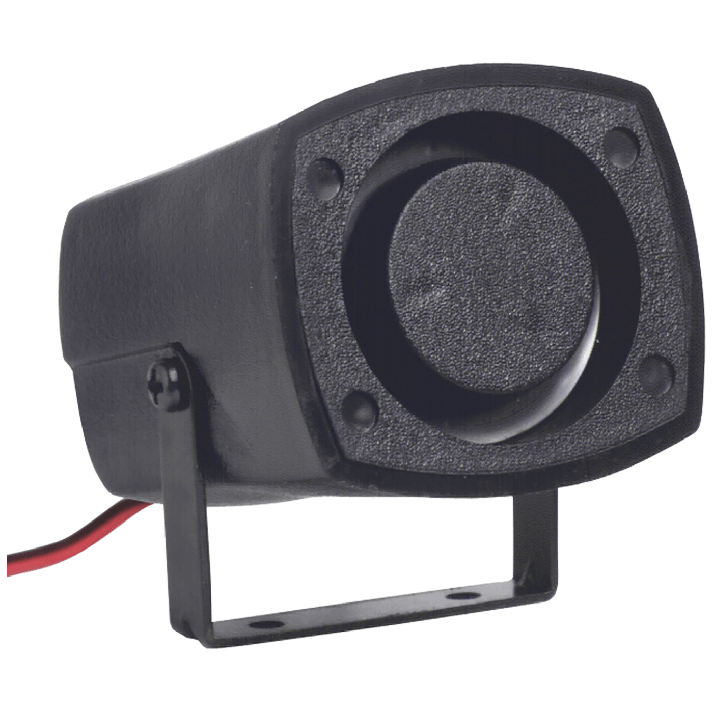 Sirena, 1-tonska velike glasnoće, za uporabu u domu ili automobilu, kompaktan dizajn, jednostavna montaža, snaga 20 W, jačina zvuka 100 dB, Piezo zvučnik, napajanje 6 - 16 V, dimenzije 45 x 40 x 104 mm, visina sa postoljem 57 mm