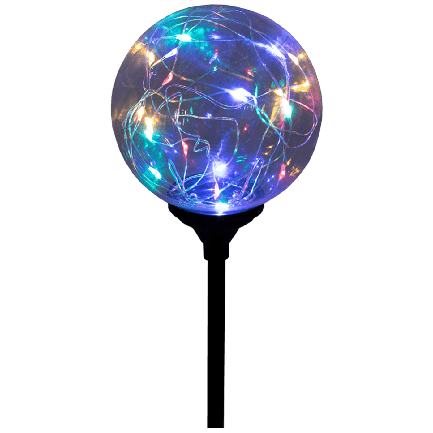 Solarna vrtna LED lampa, staklena kugla, automatsko uključenje / isključenje, ugrađena solarna ćelija i punjač za bateriju, zamjenjiva NI-MH baterija 1,2V / 600 mAh, otporno na atmosferske utjecaje, izvor svjetlosti LED u boji, materijal izrade staklo / plastika, dimenzije D9 x 86 cm, ubodna u zemlju