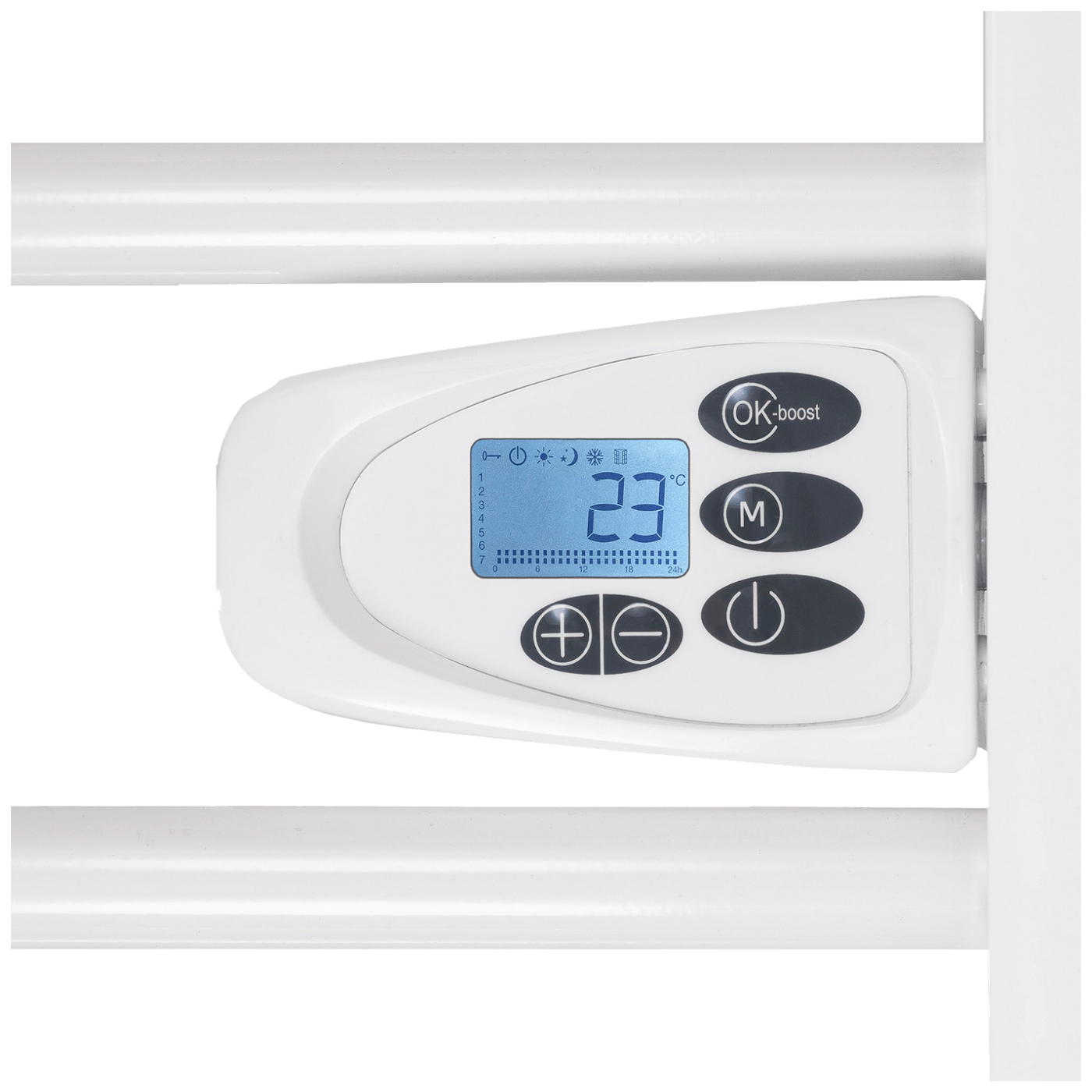 Snaga grijača 500 W, montaža na zid, jednostavan i praktičan za korištenje, ugrađen LCD zaslon, elektronički termostat, timer, tjedni program, funkcija zaštite od smrzavanja, detekcija otvorenog prozora, dječija brava, automatsko isključivanje u slučaju pregrijavanja, IP24, napajanje 230 V ~ / 50 Hz, dužina naopjnog kabela 1.5 met., dimenzije 540 x 980 x 92 mm, težina 3.5 kg