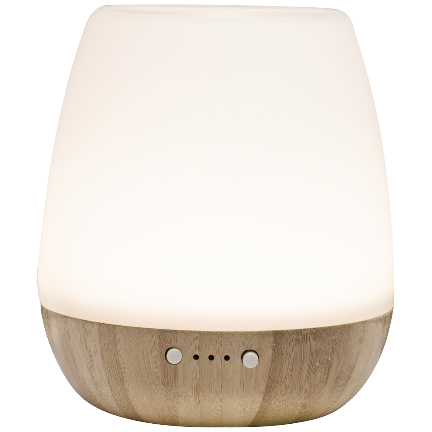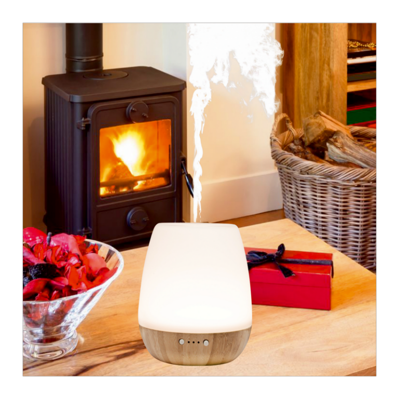 Ultrazvučna ukrasna lampa, aroma raspršivač sa svjetlom, materijal izrade: baza - bambus, opal staklo - tijelo, neprekidno ili povremeno vlaženje ( 30 sec ON / 30 sec OFF ), timer za isključenje 1 / 3 / 8 sati, dvije postavke svjetlosti: stalno svjetlo i blago pulsirajuće svjetlo sa neprekidnim blijeđenjem, , "sleep" funkcija 30 minuta, spremnik vode 180ml, mogućnost dodavanja mirisnih ulja za ugodniju atmosferu, ovlaživanje 15 - 20 ml/h