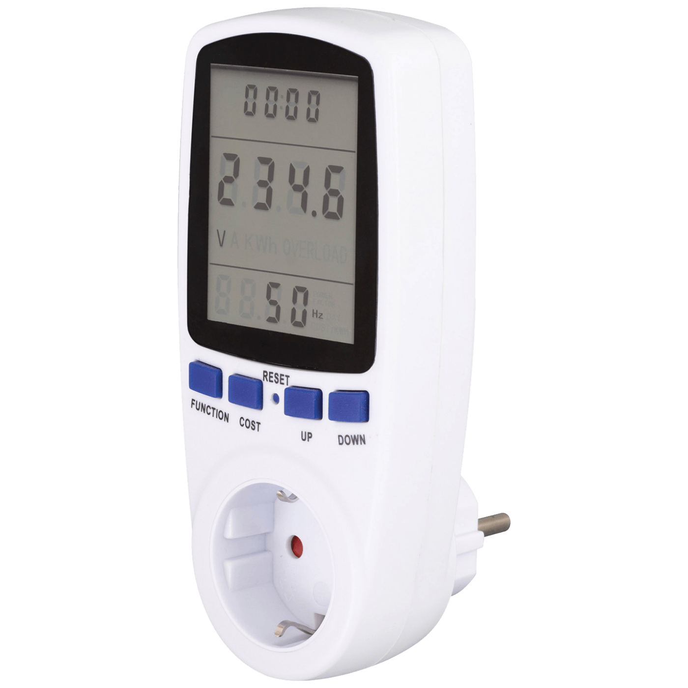 Utičnica sa mjerenjem potrošnje energije, prikaz snage, napona, struje, frekvencije, potrošnje i troškova, mjerenje radnog vremena, prikaz maksimalne i minimalne potrošnje, upozorenje u slučaju preopterećenja, memorija, dimenzije 155 x 70 x 35 mm