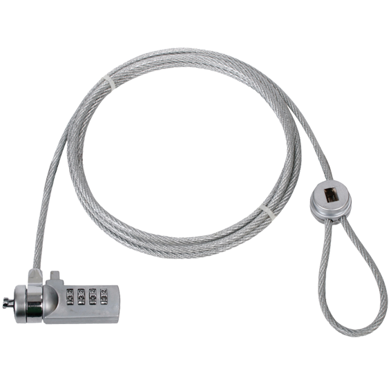 Zaštitni kabel za laptop, desktop, LCD... Tip zaključavanja: sigurnosni kod, dužina sajla 1,8 metara, boja srebrna.