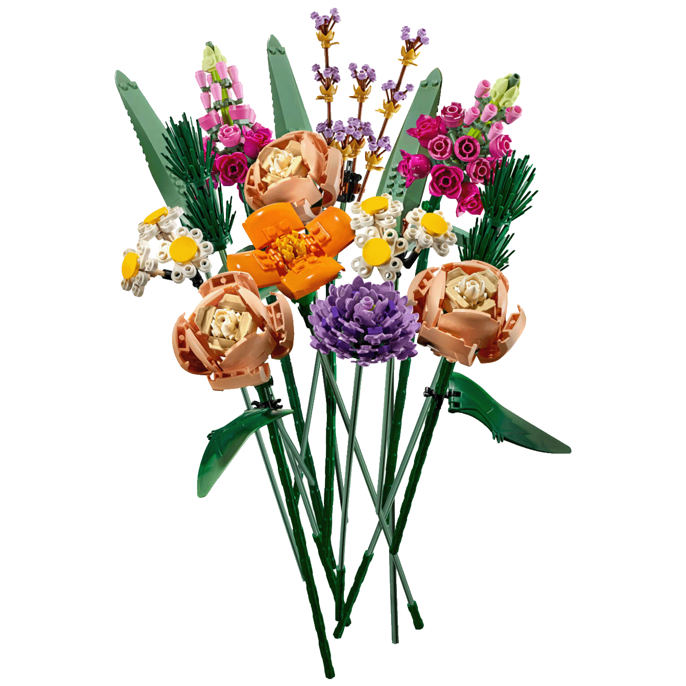 LEGO Cvijetni Buket sadrži mnogo prekrasnih cvjetova u različitim bojama, a svi su izrađeni od LEGO elemenata.