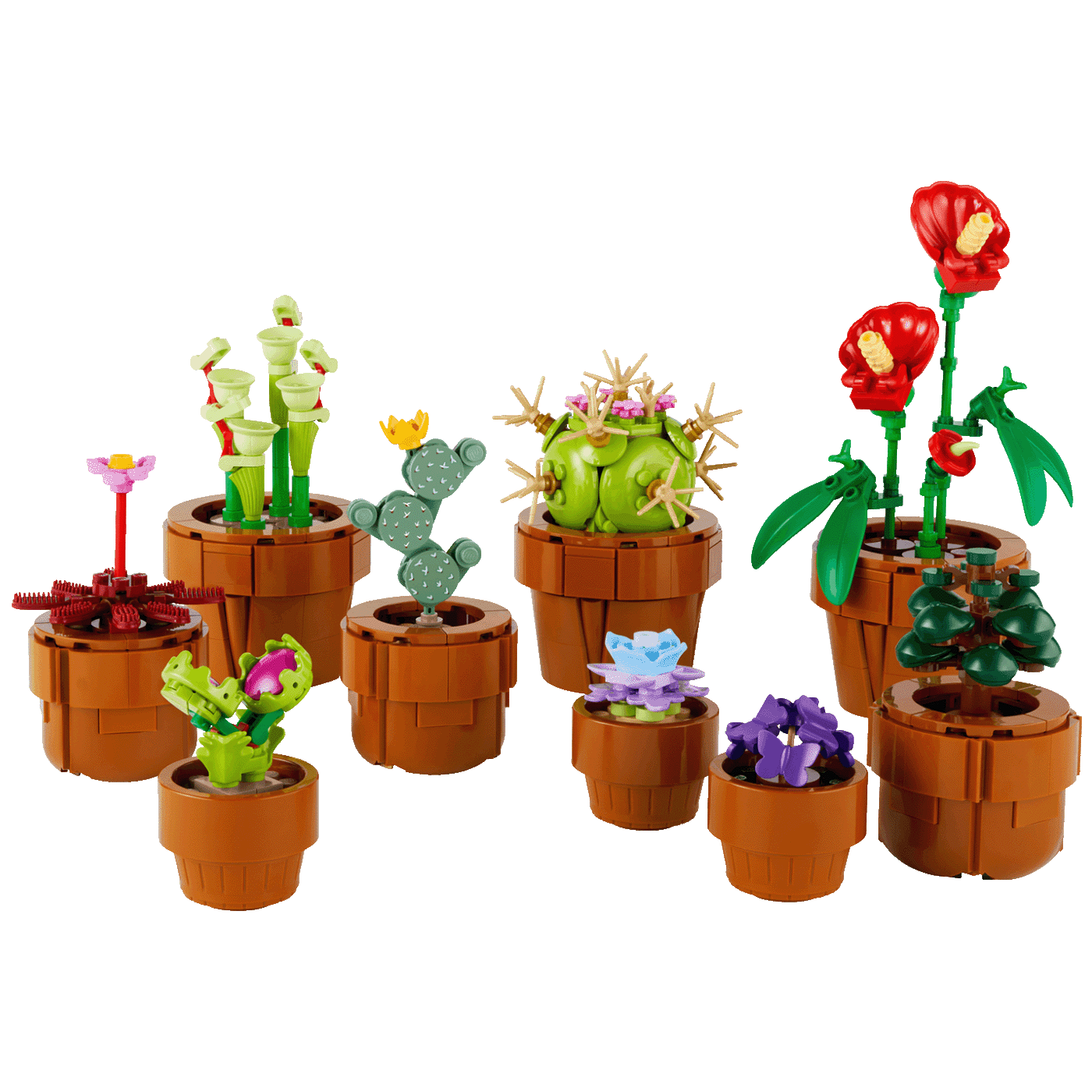- Izradite elegantan cvjetni ukras koji ne zahtijeva nimalo brige u kompletu za slaganje ukrasa za odrasle. Projekt slaganja LEGO® Icons Male biljke (10329) sastoji se od biljaka po uzoru na vrste iz sušnih i tropskih krajeva te na biljke mesožderke, svake u posudi boje terakote. Opustite se dok slažete 9 biljaka pa ih izložite kod kuće ili u uredu. Komplet je odličan dar za ljubitelje biljaka i savršen projekt za slaganje s porodicom i prijateljima. Ima modele za jednostavno, srednje i napredno slaganje, te je prikladan i za početnike i za napredne graditelje. U aplikaciji LEGO Builder dostupna su digitalna uputstva za slaganje za ovaj komplet. Pronađite prostor za opuštanje uz složive modele iz LEGO Botaničke kolekcije, dio inspirativne linije LEGO kompleta za slaganje namijenjenih odraslima.