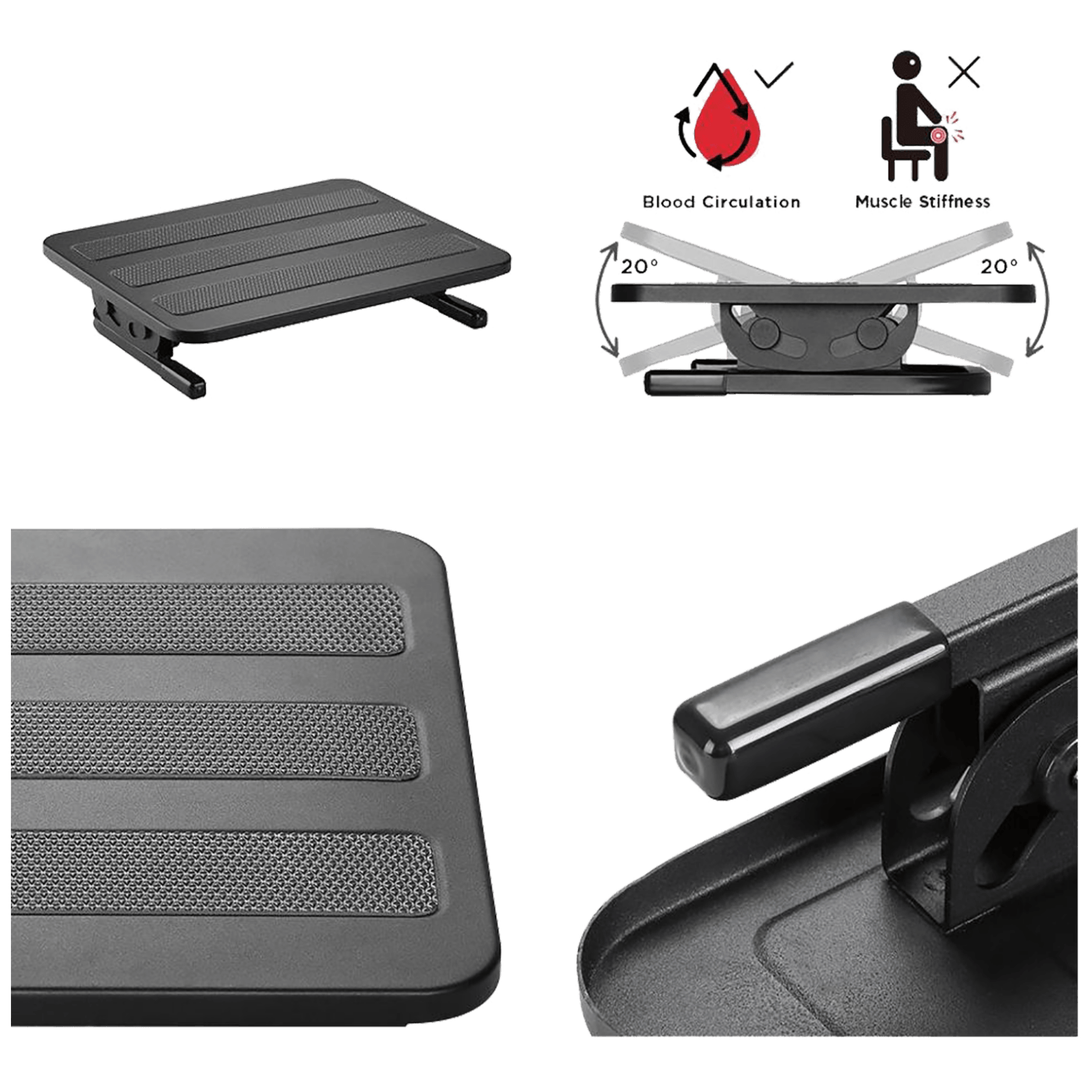 Naslon za noge, metalni, neklizajuča podloga, nagib -20 do 20°, 38 x 30 cm platforma, max. opterećenje 20 kg