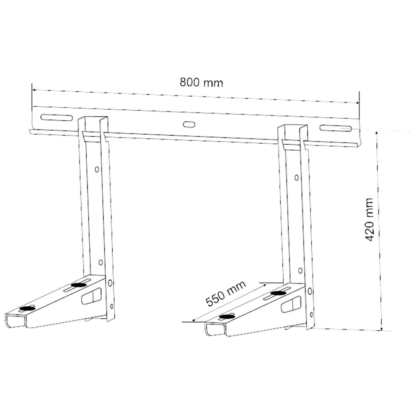 Univerzalni nosač za vanjsku jedinicu klima uređaja, kompatibilan sa svim modelima, nosivost do 200 kg, materijal izrade pocinčani čelik.