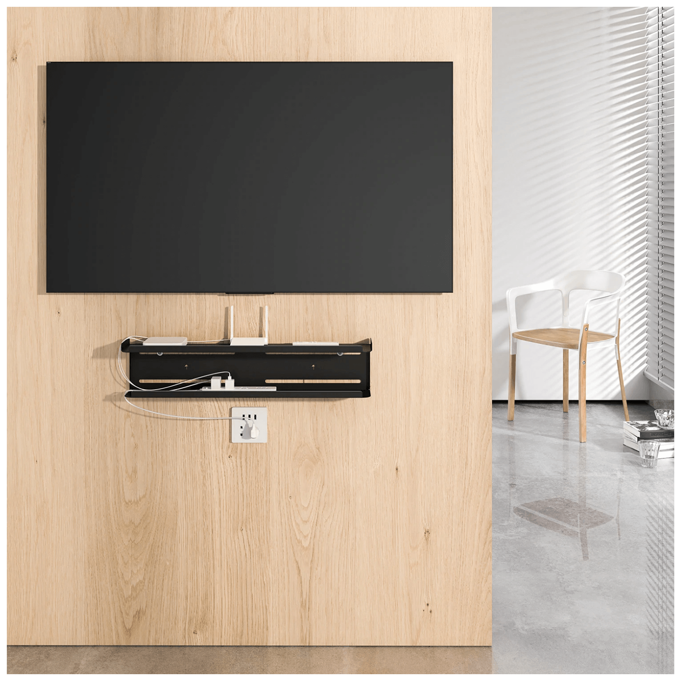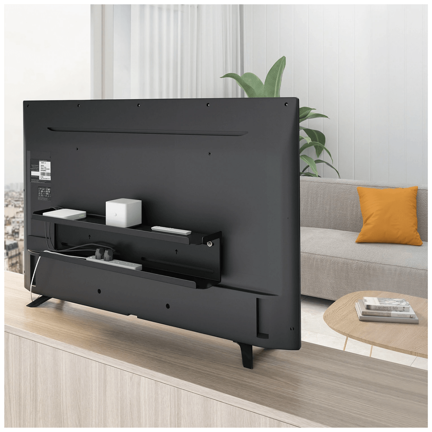 Ova polica olakšava uređenje prostora oko TV-a.