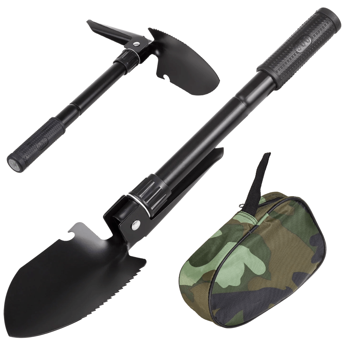 - Višenamjenski alat: lopata, pila, motika, kompas i otvarač za boce u jednom