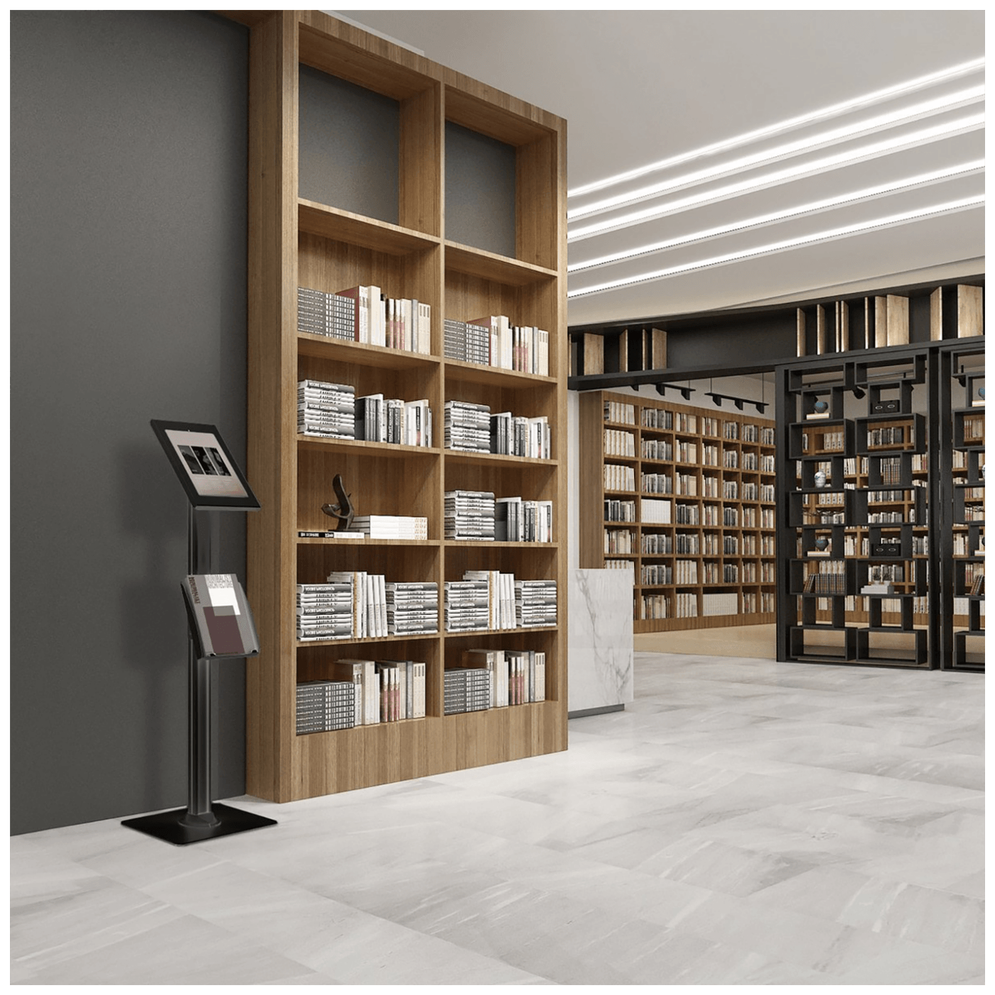 Postolje za tablete, iKiosk podni stalak, odlikuje se visokim kvalitetom izrade i čvrstom podlogom sa montažnim rupama, osiguravajući maksimalnu sigurnost uređaja koji se nalazi u njemu.