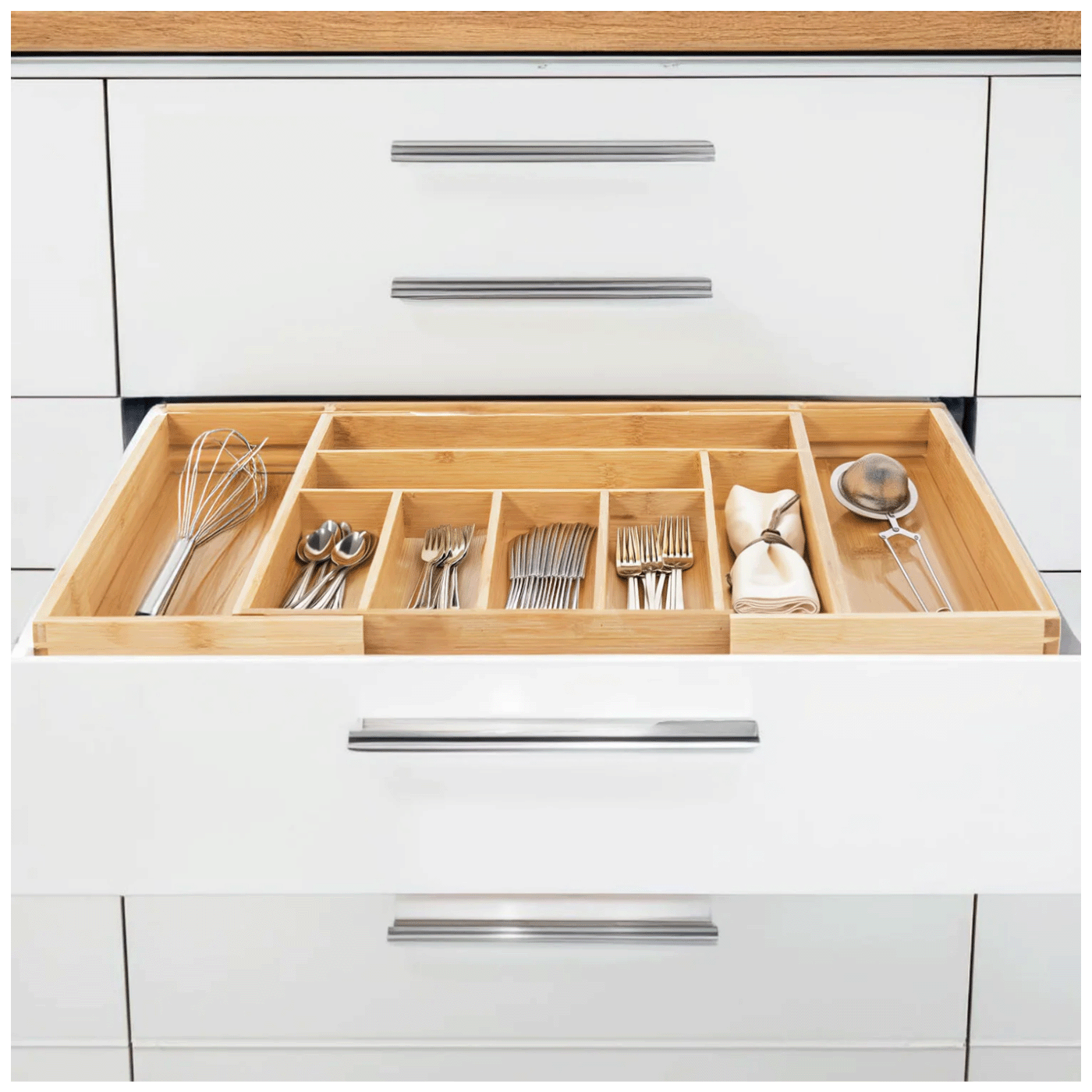 Opremljen je s 9 odjeljaka koji će vam pomoći da ladicu s priborom za jelo održavate u redu.