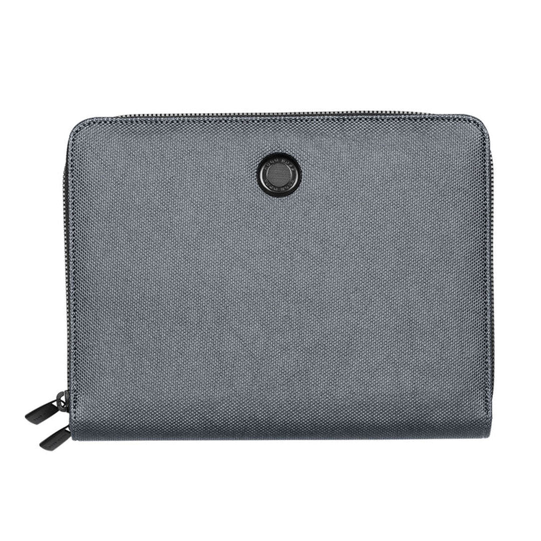 Besprijekorno skrojen u tamno sivoj zrnastoj teksturi i sa prepoznatljivom mekanom crnom pločom s potpisom, ova konferencijska fascikla formata A5 sa patentnim zatvaračem je odlučno muževna i moderna. Broj listova: 40. Težina (g): 646; Dimenzije: 180 x 230 x 20 mm.