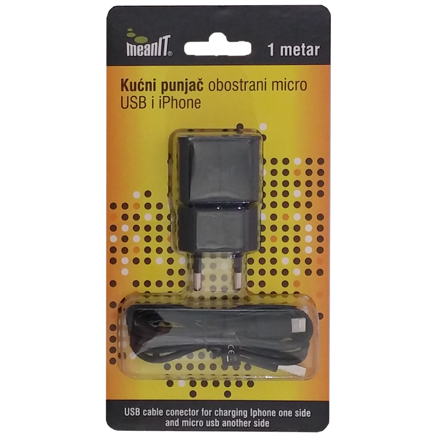 MeanIT Punjač kućni za smartphone i iPhone, 1 met - PUNJAČ KUĆNI ZA SMARTPHONE I IPHONE