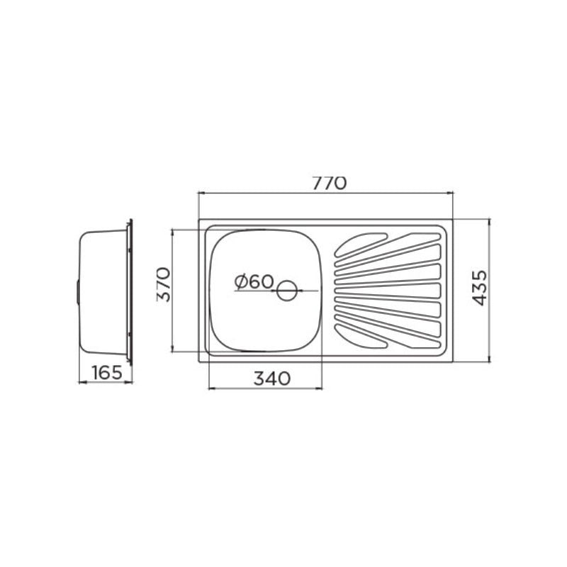 Sa dubinom korita od 165 mm i otvorom sifona Ø60 mm, pruža praktičnost i komfor pri svakodnevnoj upotrebi. Zahvaljujući meri ormarića od 450 mm i kompaktnim dimenzijama 770x435 mm, idealna je za manje i moderne kuhinje.