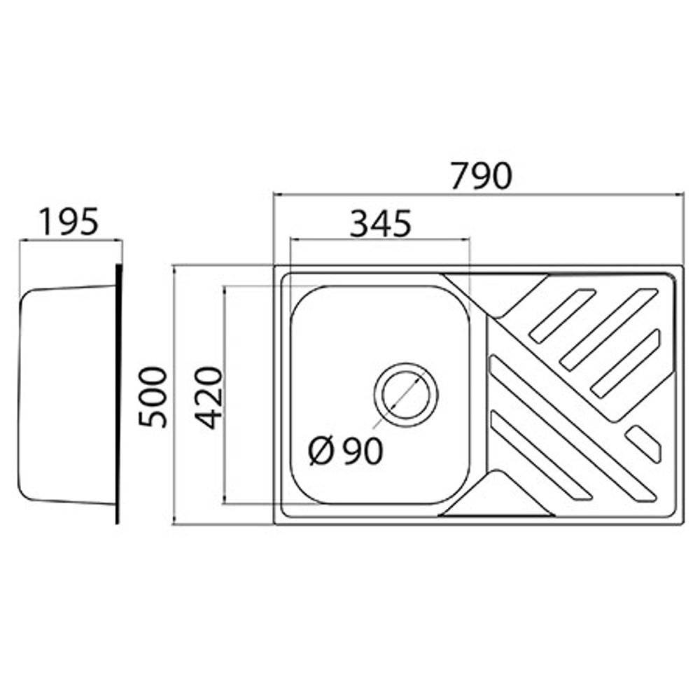 Sa dubinom korita od 200 mm i otvorom sifona Ø90 mm, pruža dovoljno prostora za udobno i praktično pranje posuđa. Dimenzije 790 × 500 mm i mera ormarića od 450 mm čine ovaj model idealnim izborom za moderne i funkcionalne kuhinje.