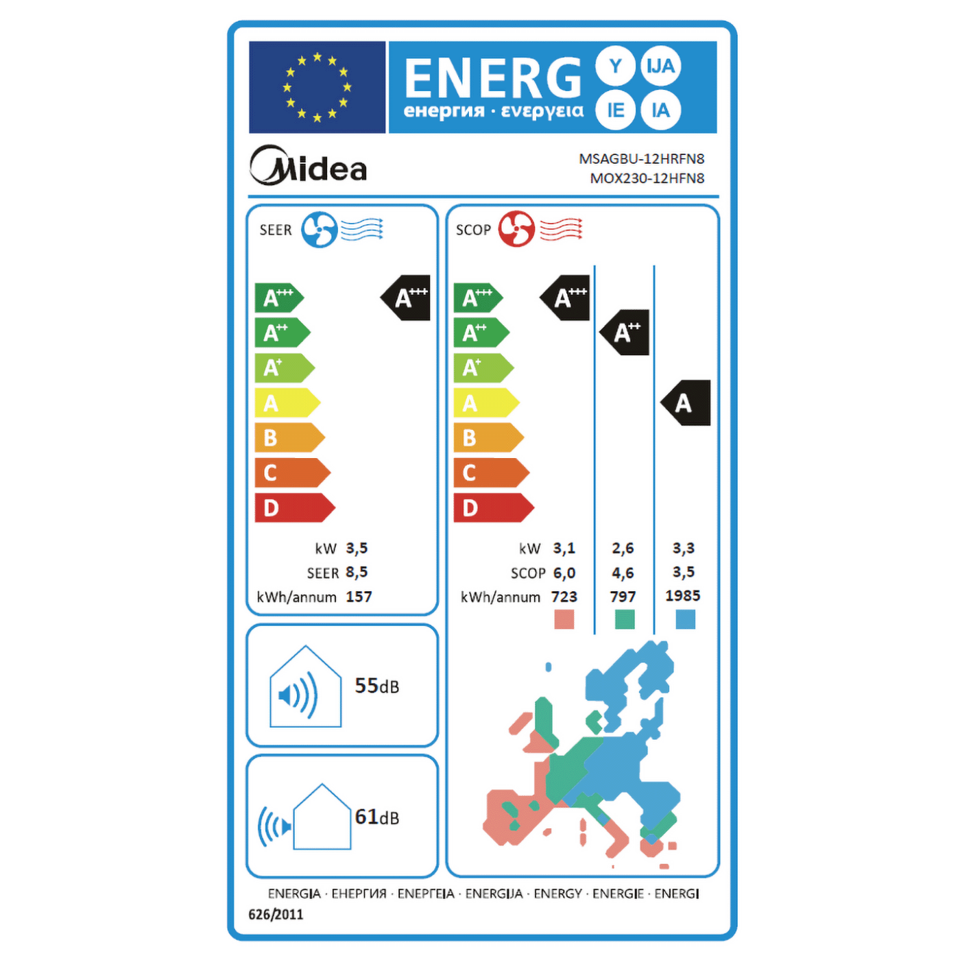 Midea Xtreme Save Pro + 2 grijača u vanjskoj jedinici - komplet zidna unutarnja i vanjska jedinica