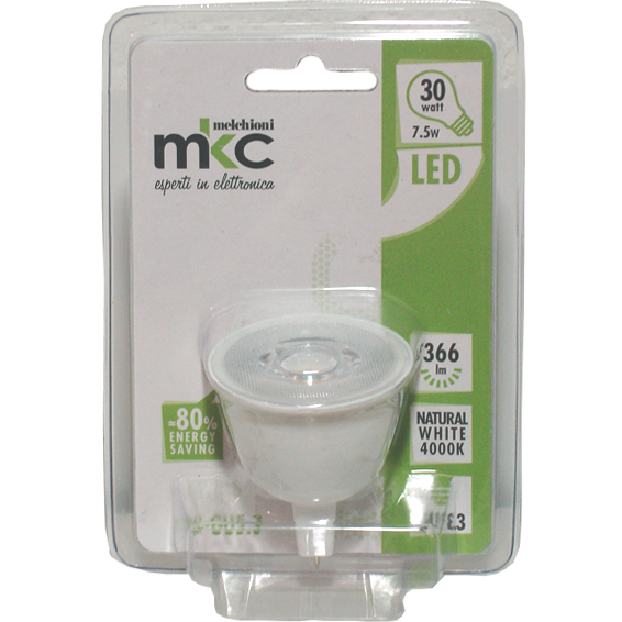 Žarulja, LED 7.5W potrošnja - ekvivalent 31W žarulje, GU5.3, 366 Lm, snop svjetlosti 38°, 4000K prirodna bijela svjetlost, energetska ušteda do 75%, Idealna za domove, urede , ugostiteljske objekte, itd..... Napajanje 12V DC