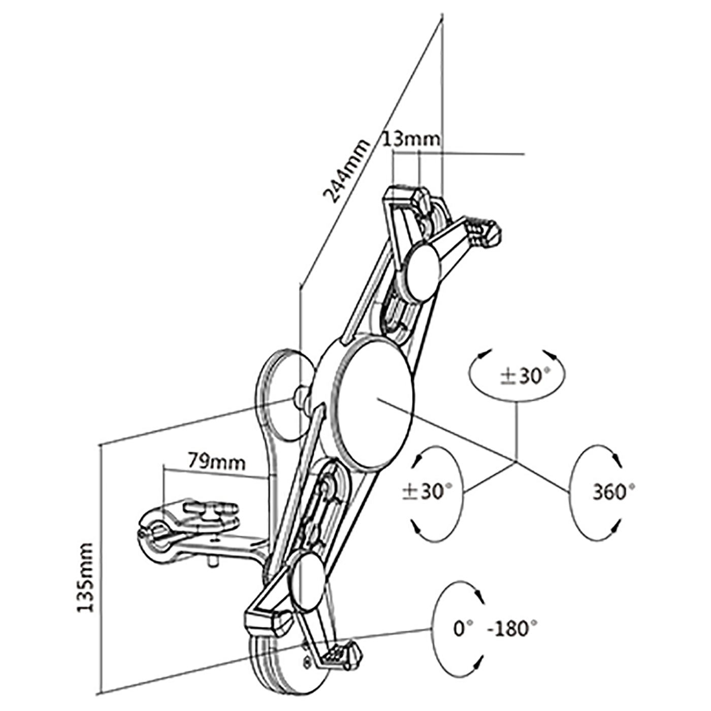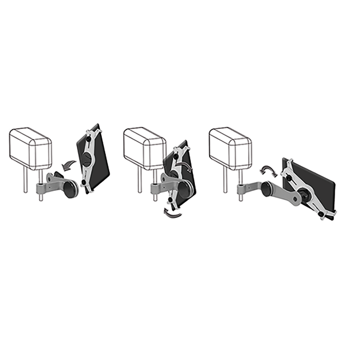 Auto nosač za tablet, 7 - 10.4", montaža na naslonjač za glavu, nagib 40 °, zakretanje 360 °, raspon stezaljki 10 - 15 mm, mogućnost montiranja dva nosača jedan pored drugog