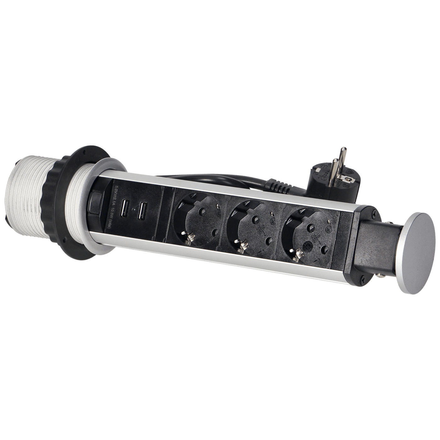 Dizajniran za unutrašnju ugradnju u stolove, ploče stolova i kancelarijski namještaj.