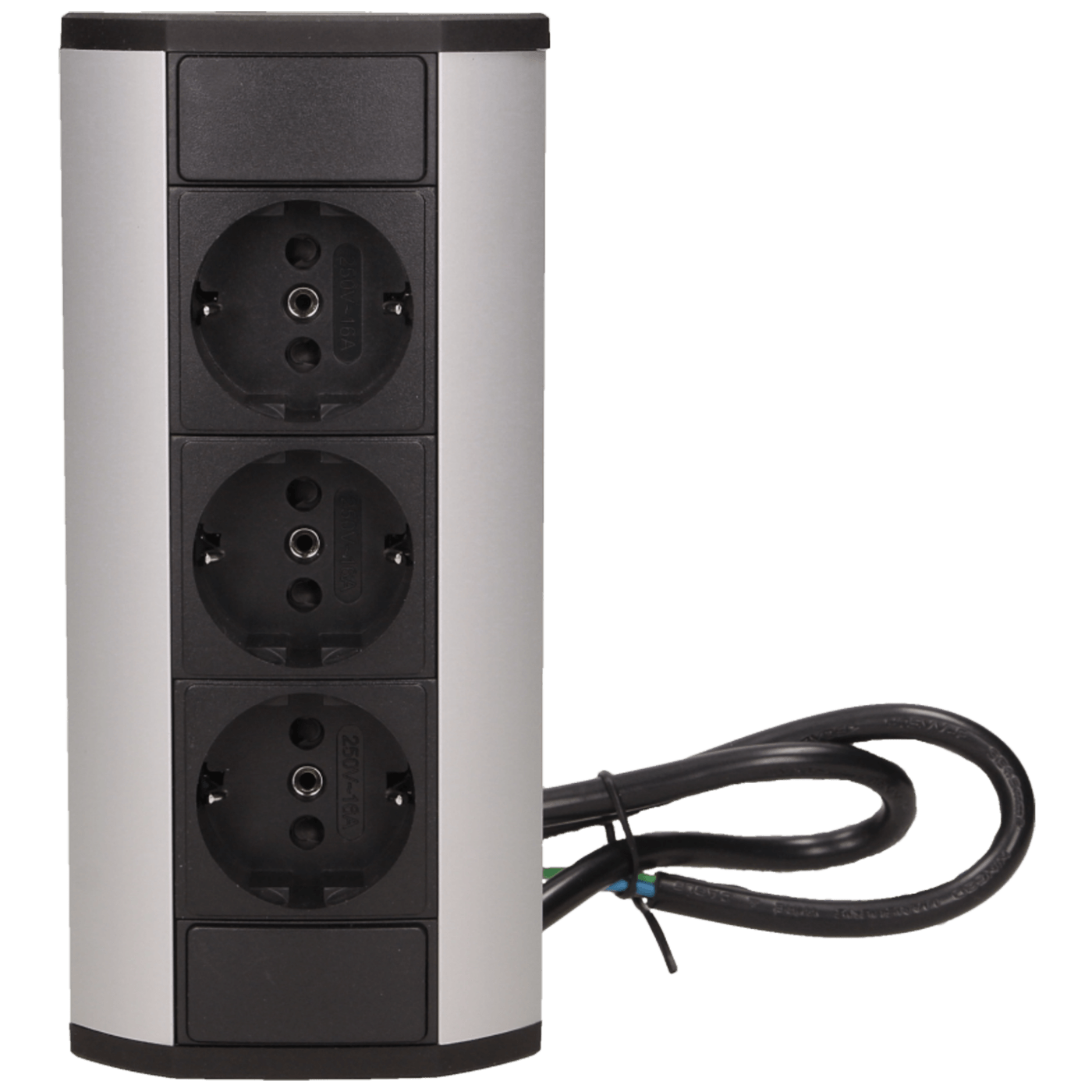 Utičnica za namještaj sa tri Schuko utičnice sa uzemljenjem i sigurnosnim zatvaračima.