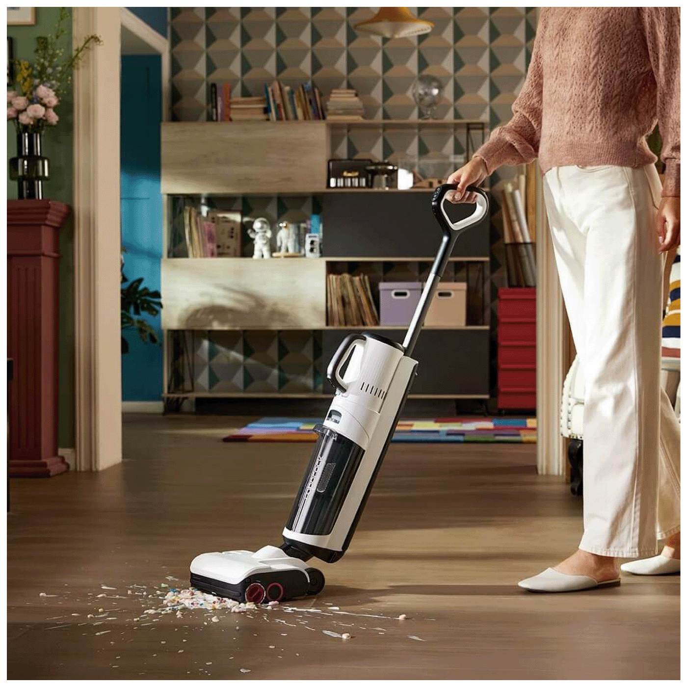 Roborock Dyad Pro Combo 5u1 bežični usisavač za mokro i suho čišćenje sa usisnom snagom 17000 Pa, funkcija samočišćenja i sušenja, pametni senzor za prašinu, 4000 mAh baterija, 43 minute rada sa jednim punjenjem, aplikacija, LED-zaslon i glasovno upravljanje. Primjeren za tvrde površine, tepihe, sjedeći namještaj, sofe, …