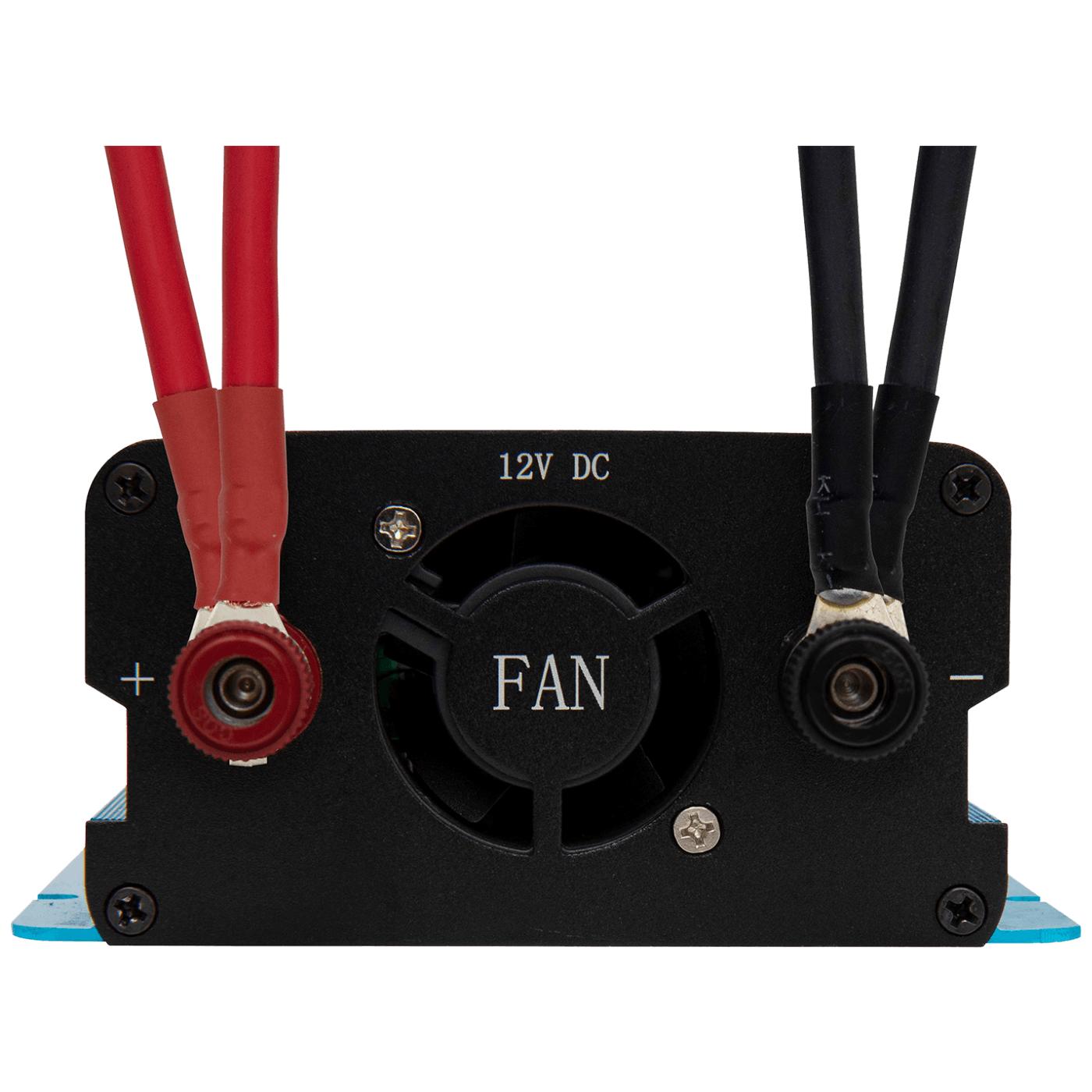 Adapter/Pretvarač koji pretvara napon od 12V DC u čisti sinusoidni napon od 230V AC / 50Hz, snaga 1000 W. Konstantna opterećenost 500 W, max. 1000 W. USB izlaz za brzo punjenje 5V / 2.1.