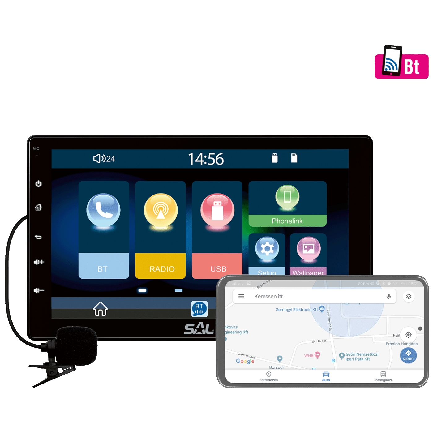 SAL Auto radio, 4 x 45W, 9" LCD Display, BT, USB, microSD - VB X1000