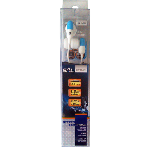 SAL Slušalice, stereo, 3,5mm, bijelo/plavo - EP 8/BL
