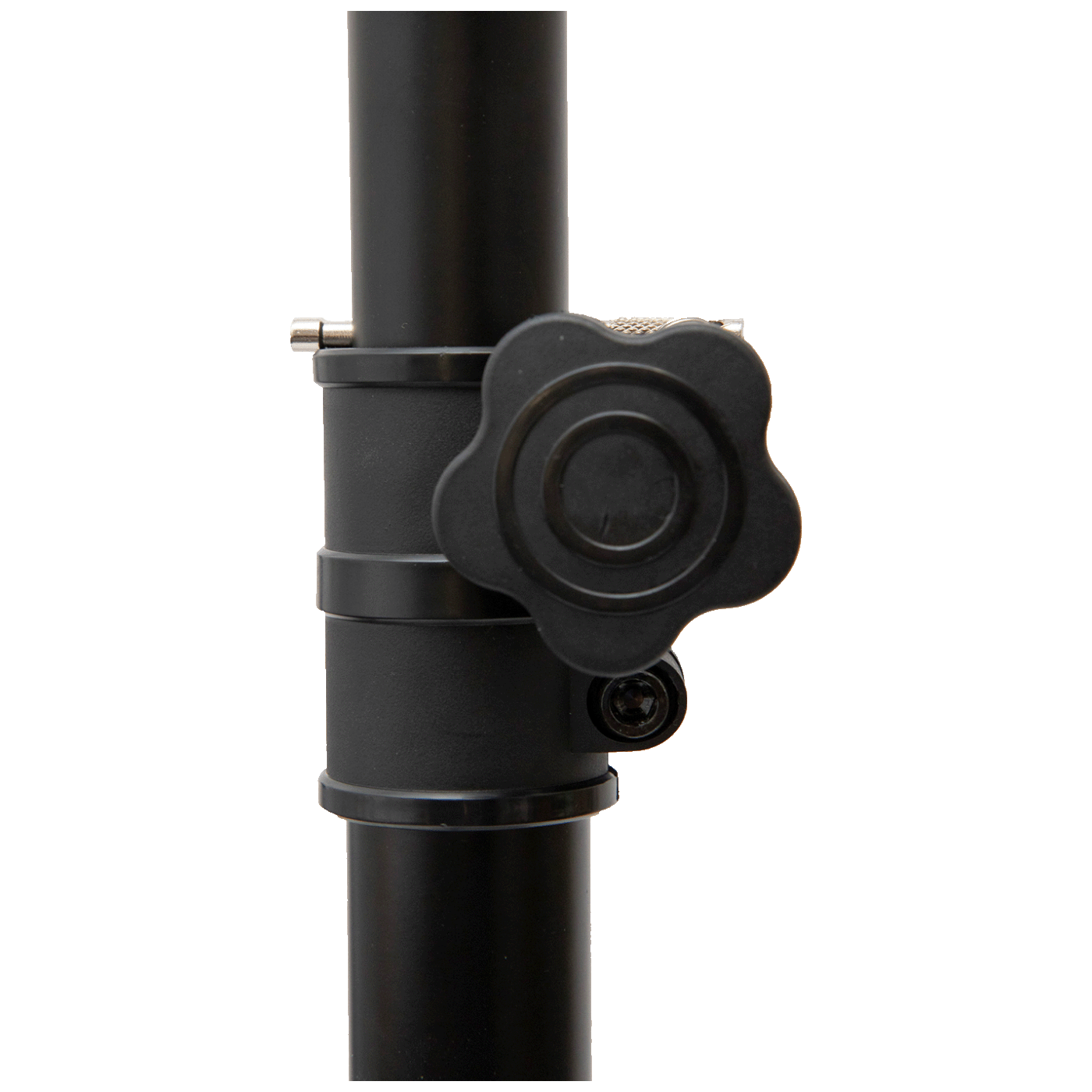 Čvrsta konstrukcija postolja osigurava dugotrajnu stabilnost, a istovremeno je jednostavna za rukovanje i transport. Protivklizne nožice i ugrađena sigurnosna brava pružaju dodatnu zaštitu kako bi zvučnik uvijek ostao na mjestu. Prečnik baze od 0,8 metara dodatno povećava stabilnost stalka, što je posebno važno za veće ili teže zvučnike.