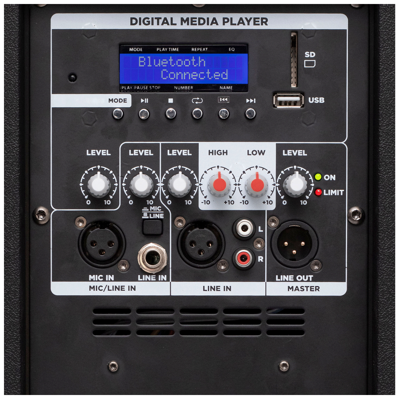 Ovaj 2-way aktivni bas-refleksni zvučnik ima masivni subwoofer od 15" koji jamči dubok i čist bas. Bežična Bluetooth povezivost i opcija USB/SD reprodukcije glazbe pružaju dodatnu pogodnost za korisnike.