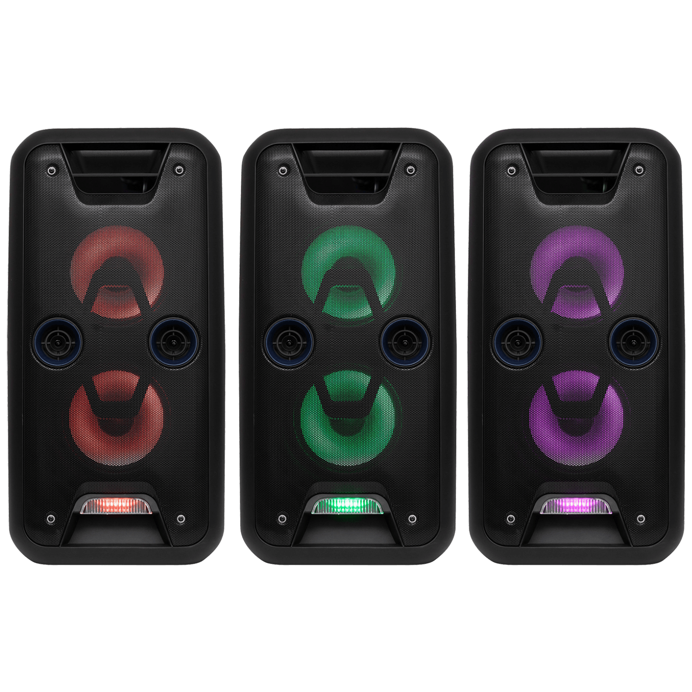 Bluetooth bežična veza, plavi LED display, ugrađen FM radio sa automatskim traženjem stanica, MP3 player, reprodukcija sa USB-a ili SD memorijske kartice, AUX ulaz x 2, ulaz za mikrofon (6.3 mm) x 2, KARAOKE funkcija, impedancija zvučnika woofer: 4 Ohm / visokotonac: 6 Ohm, frekvencijski opseg 38 - 20 000 Hz