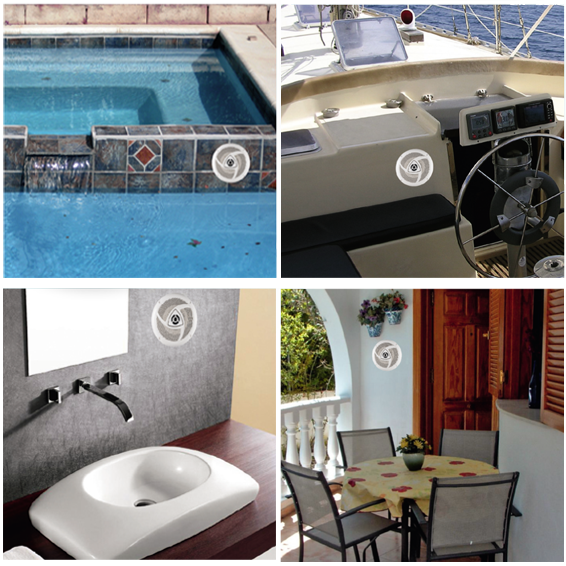 Set zvučnici, ugradbeni, 2-sistemski koaksialni dizajn, snaga 100W ( 2 x 50W), frekventni opseg 50 - 20000 Hz, osjetljivost 87dB, djelimično otporan na vlagu i paru, idelan za ugradnju u saune, terase, spa centre, vrt, kupaonice, plovila, Ø 130mm dimenzije zvučnika ( ugradbene ), dimenzija Ø150mm x 45mm