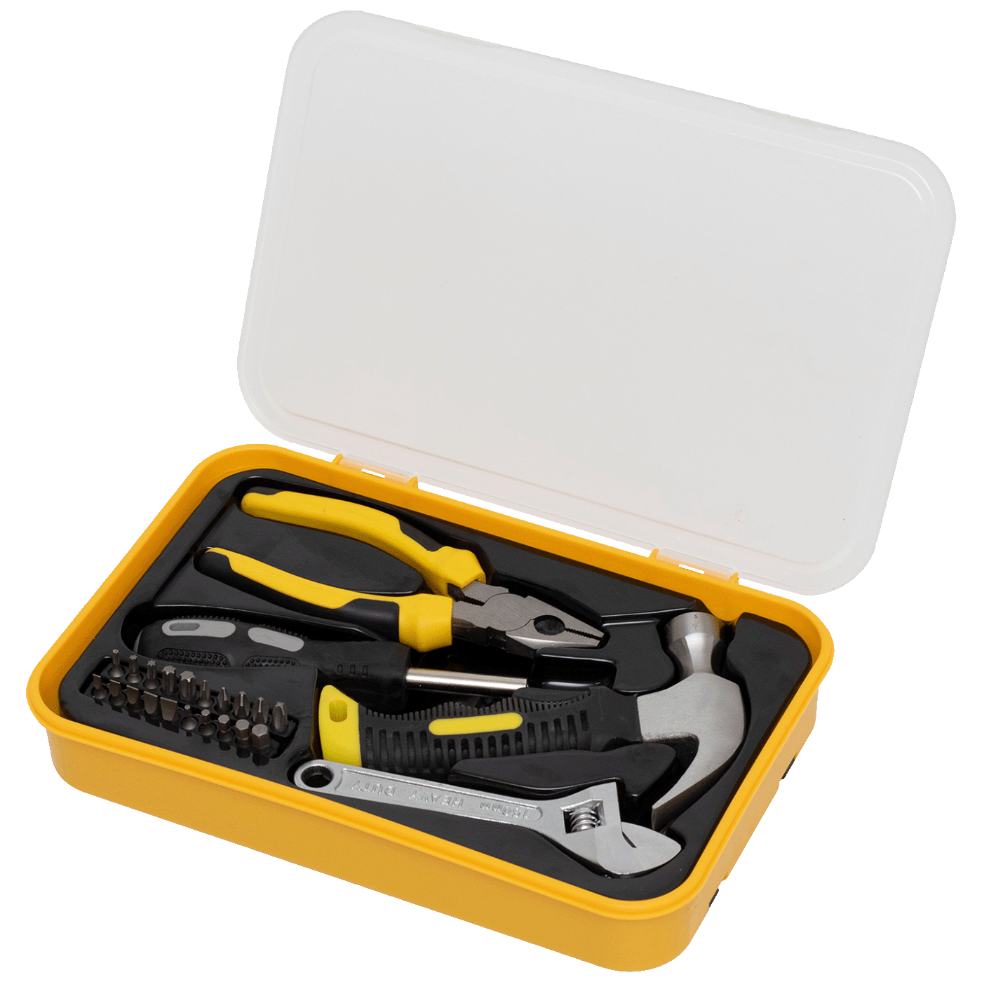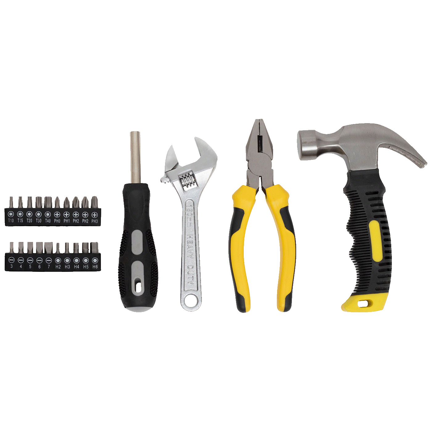 Set uključuje kombinirana kliješta od 165 mm, idealna za savijanje i rezanje kabela i žica, i čekić s kandžama od 160 mm (8oz), savršen ne samo za zabijanje čavala, već i za njihovo uklanjanje. Podesivi ključ je dug 150 mm i ima otvor do 20 mm, što ga čini jednostavnim za korištenje za vijke i matice različitih veličina. Svi ovi alati čuvaju se u praktičnoj, čvrstoj plastičnoj kutiji za pohranu, koja organizira alate na pregledan i kompaktan način. Kutija je dimenzija 280 x 45 x 185 mm pa se lako može pospremiti gotovo svugdje, a uz težinu od 1,2 kg lako ju je i prenijeti ako je potrebno.