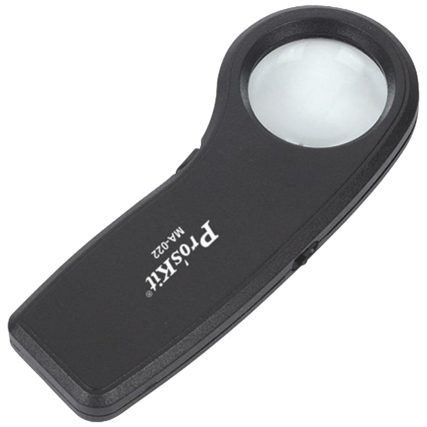 Ručno povećalo s osvjetljenjem MA-022 ima kvalitetne stakle leće i ima ugrađeni UV LED izvor svjetla, tako da ne samo da daje izvrsno povećanje (7.5x), već i osvjetljava željenu površinu. Povećalo je pogodno za pregled novčanica.