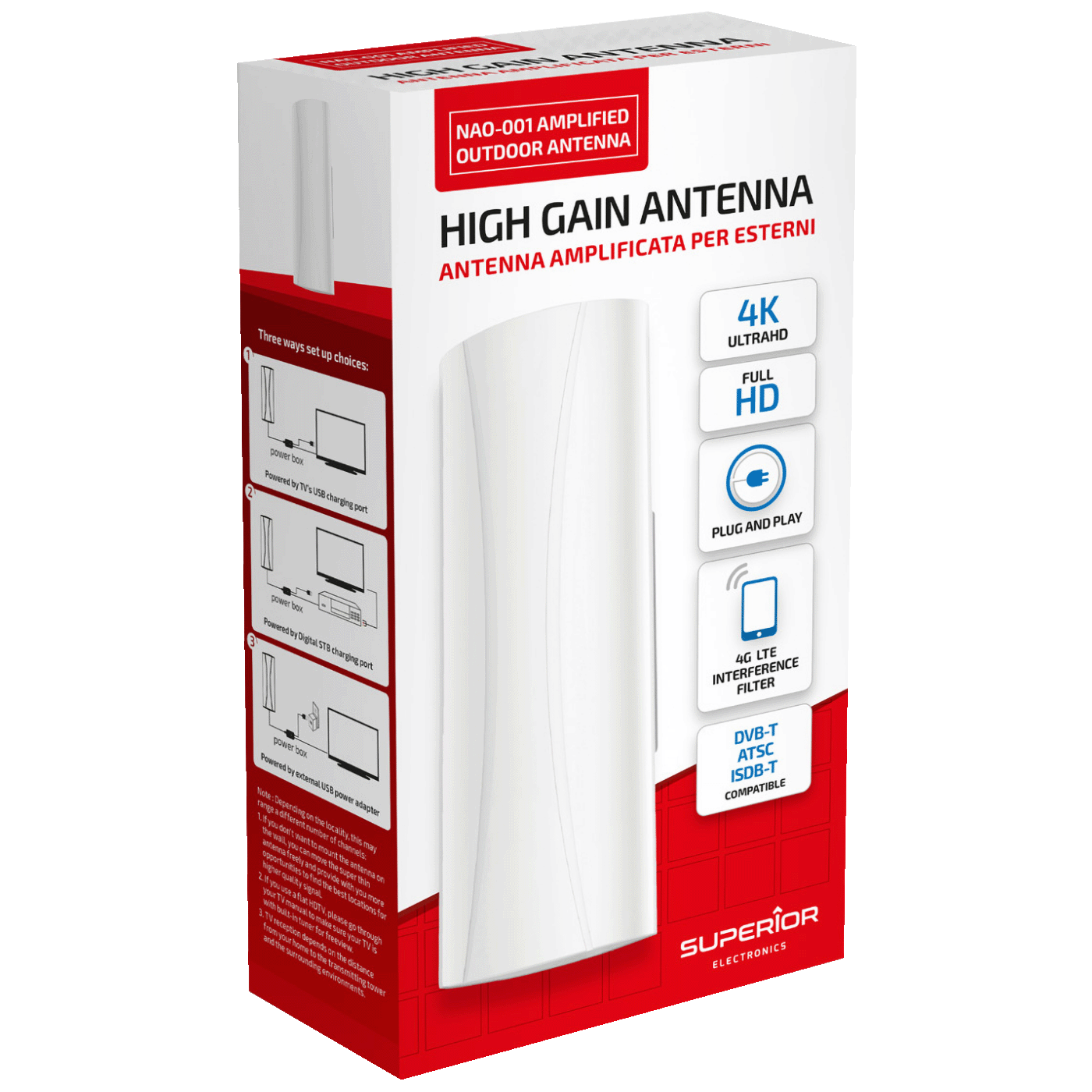 Superior Antena sa pojačalom, HD/Full HD/Ultra HD DVB-T2, outdoor - NAO001