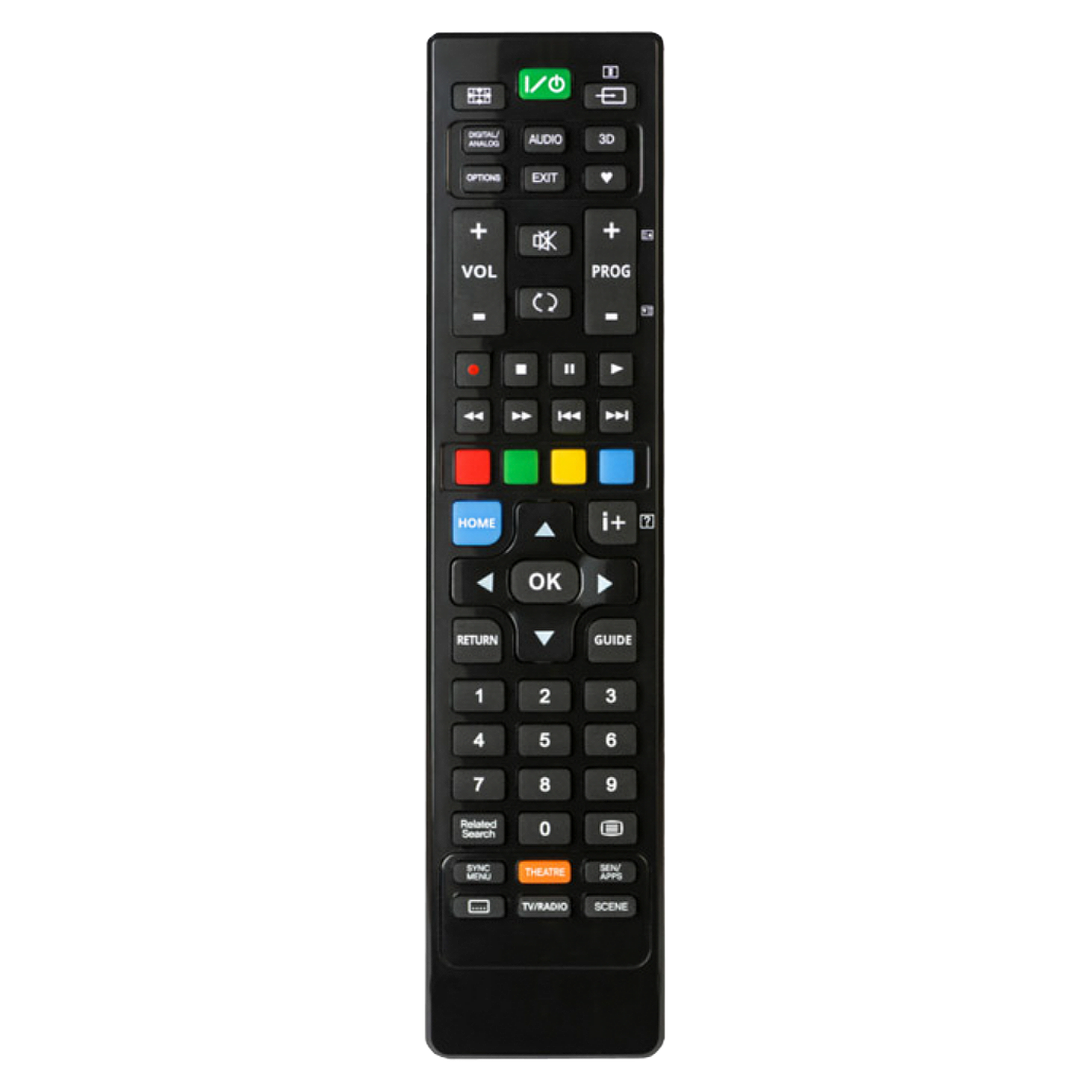 Univerzalni daljinski upravljač sa več predefiniranim kodovima za sve Sony TV prijemnike proizvedene od 2000-te godine, dvostruki IR prijenos čini ovaj daljinski upravljač odmah funkcionalnim. Napajanje baterija AAA x 2.