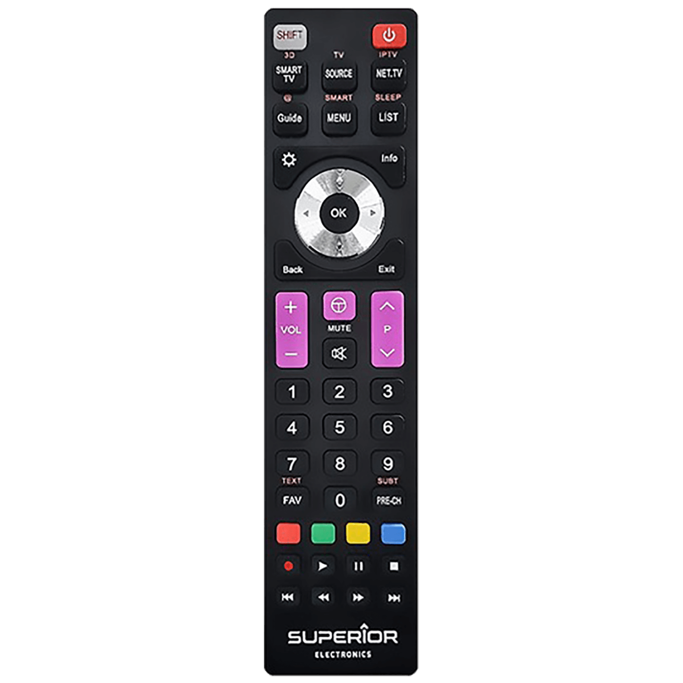 Univerzalni daljinski upravljač sa več predefiniranim kodovima za sve Thomson, TCL TV i Smart TV prijemnike, dvostruki IR prijenos čini ovaj daljinski upravljač odmah funkcionalnim. Napajanje baterija AAA x 2 (nisu uključene u pakiranje).