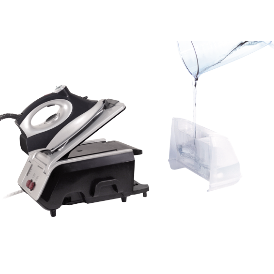 Glačalo sa parnom postajom 2250W, tlak 5 BAR-a, zapremina postaje 1l, keramička ploča, dimenzije: postaja 390 x 280 x 170mm, plata: 270 x 120 x 130mm.
