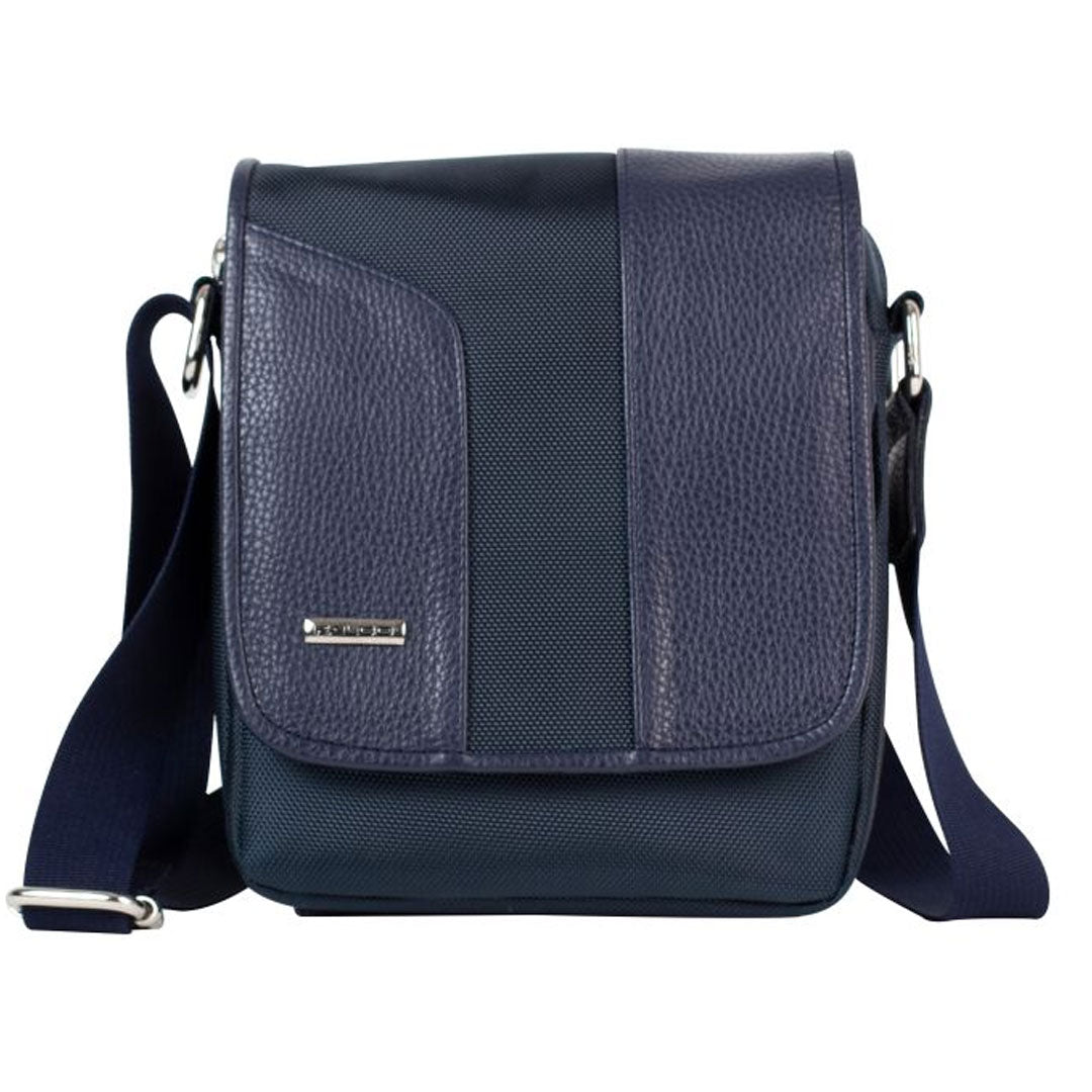 Sportska muška torbica izrađena od kvalitetne prirodne kože u kombinaciji sa impregniranim platnom. Ima praktičnu unutrašnjost sa dva komotna džepa. Sa spoljne strane ima džep sa cipom koji se nalazi ispod klapne i dugački podesivi grif. Izgled torbice je upotpunjen metalnom pločicom Falco. Dimenzije: