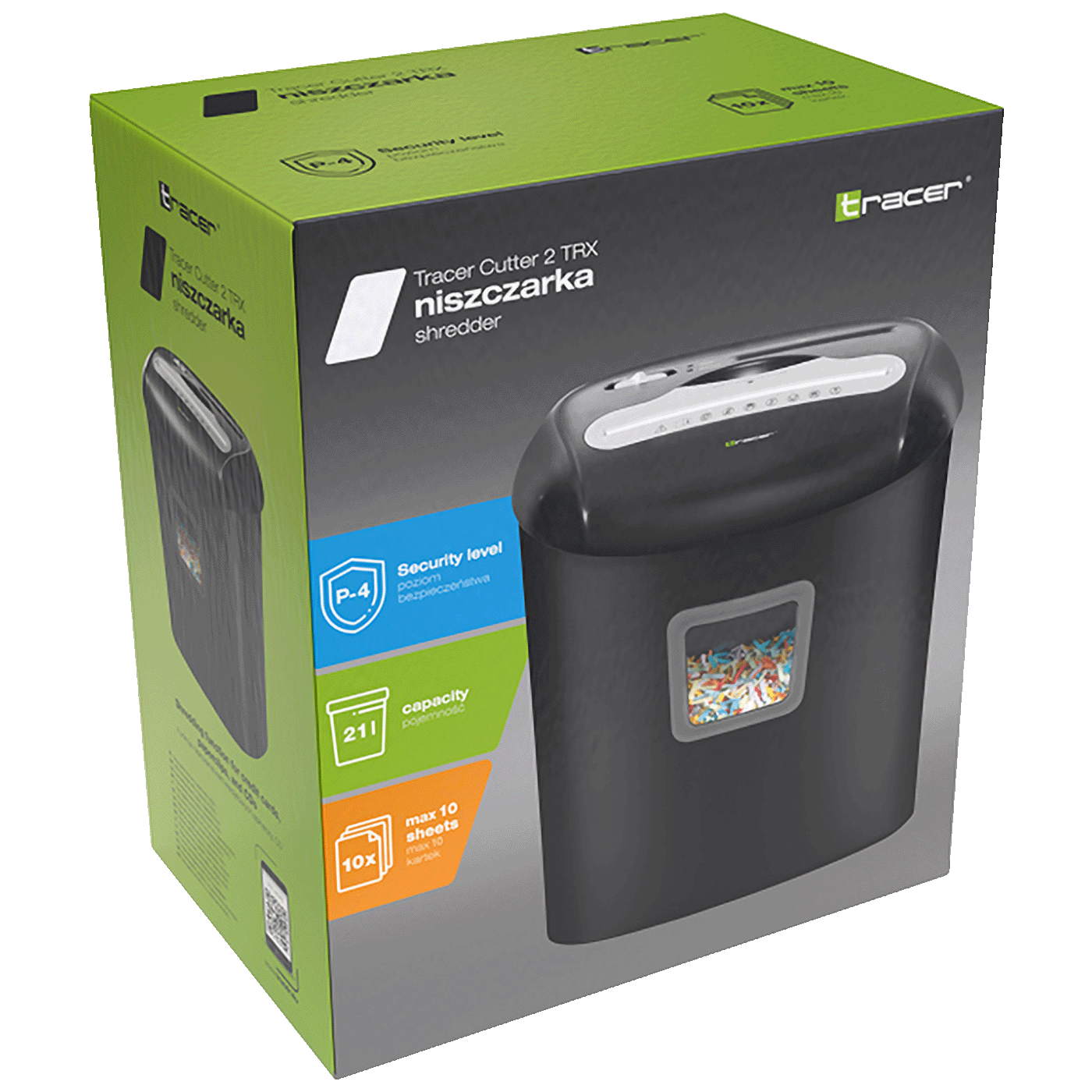Tracer Cutter 2 TRX je efikasna i pouzdana seckalica, idealna za male kancelarije ili kućnu upotrebu. Zahvaljujući visokom nivou sigurnosti i svestranoj funkcionalnosti, omogućava brzo i sigurno uništavanje povjerljivih dokumenata, kreditnih kartica ili medija za pohranu.