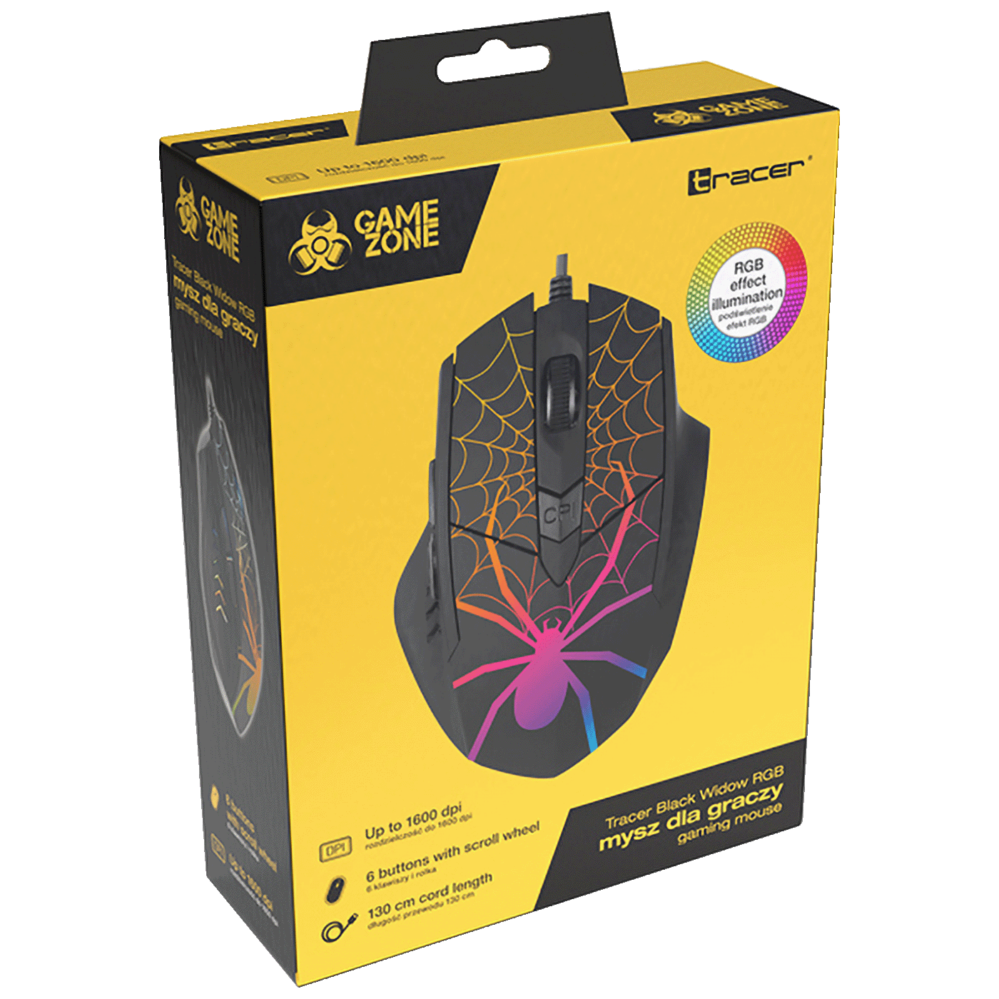 Pridružite se igri sa svojim potpuno novim mišem Tracer Black Widow. Ergonomski i lagani dizajn, pozadinsko osvjetljenje u duginim bojama i osjetljivi optički senzor, zajedno s jedinstvenim izgledom, učinit će Tracer Black Widow vašim omiljenim igračkim partnerom. To je sve što vam je potrebno za vašu virtualnu avanturu. Multimedijski miš Tracer Black Widow dio je naše popularne linije proizvoda za igre Tracer GAMEZONE namijenjene zahtjevnim igračima koji očekuju napredne funkcije i parametre od svoje opreme za igre. Zahvaljujući visokoj kvaliteti proizvoda, uređaji linije GAMEZONE jamče dug vijek trajanja čak i uz intenzivnu upotrebu.