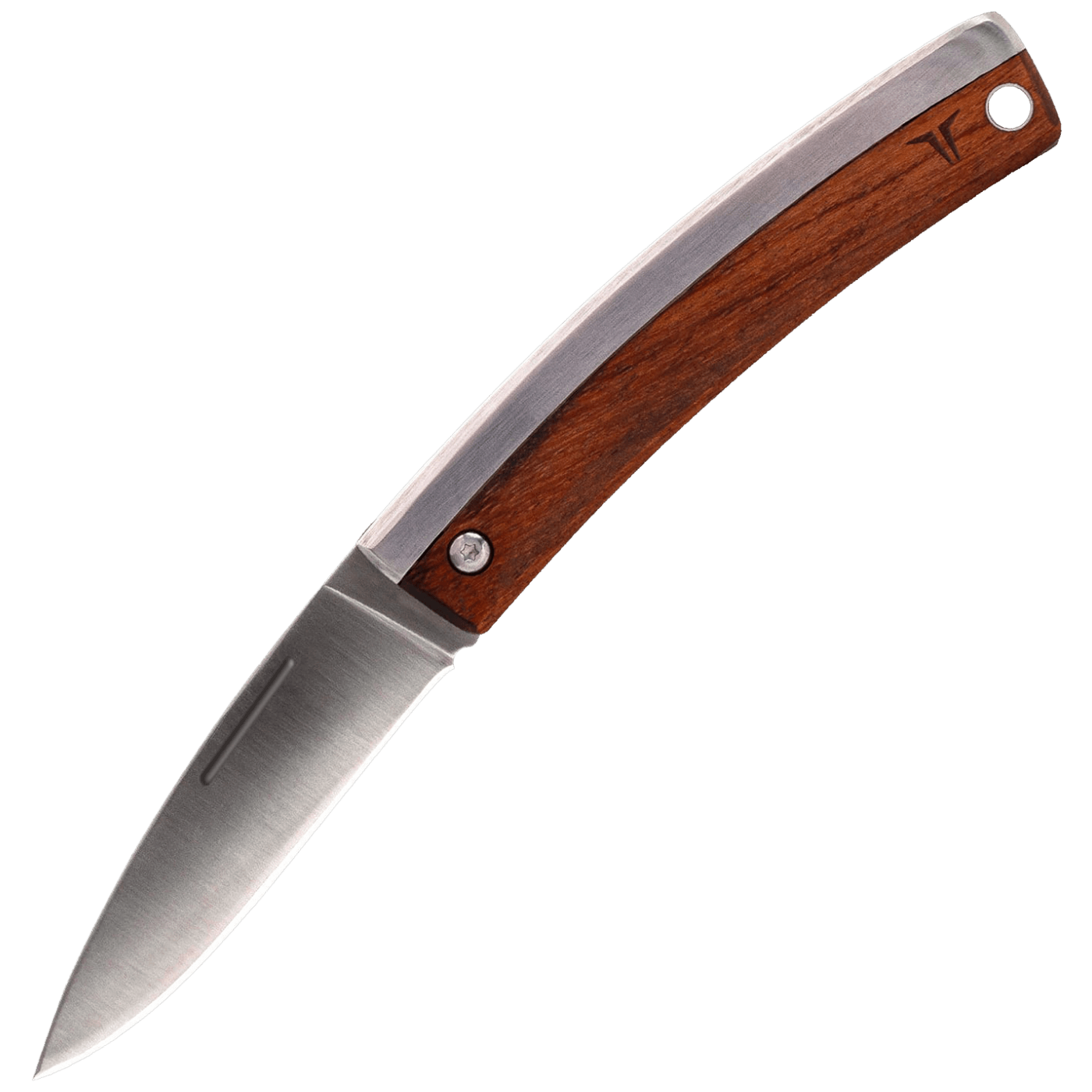 Džepni nož, oštrica od nehrđajućeg čelika, dužina oštrice 6.35 cm, kućište od brušenog čelika, ručka od ružinog drveta
