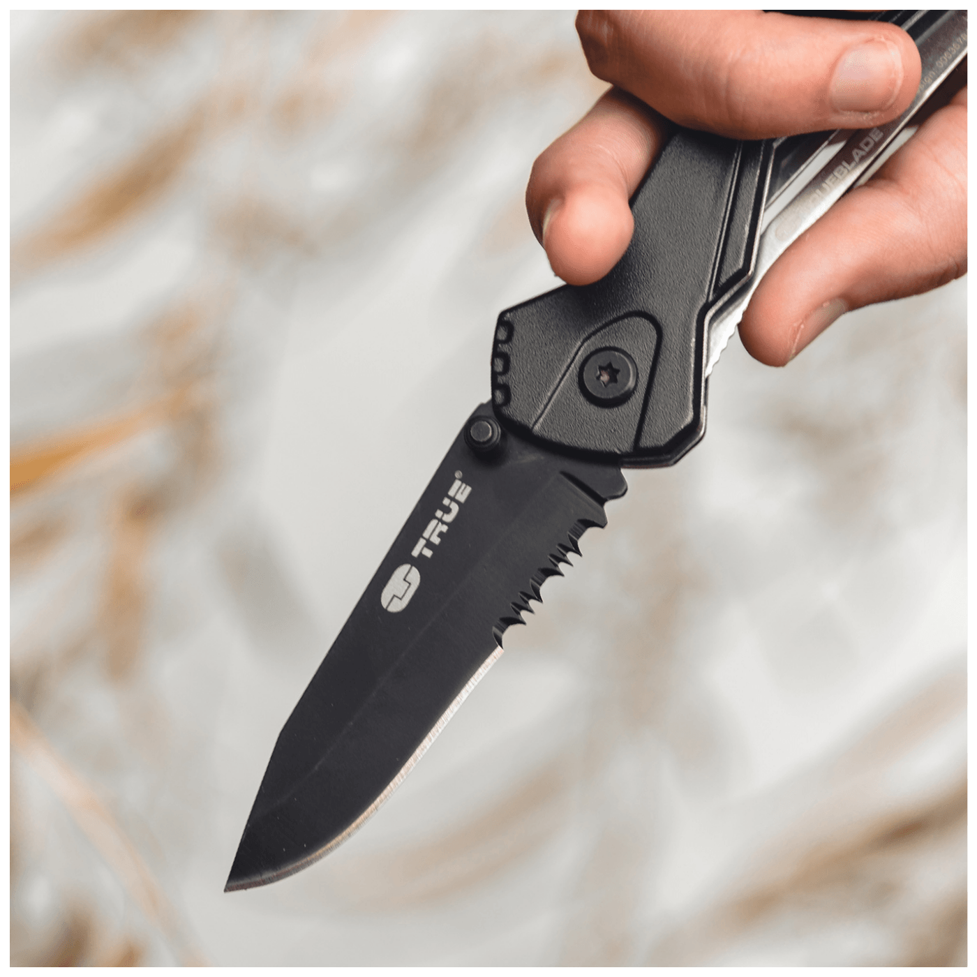 Trueblade je džepni nožić koji se preporučuje za lagane radove na otvorenom. Oštrica mu je izrađena od crnog anodiziranog nehrđajućeg čelika, koji je nazubljen u jednom dijelu.