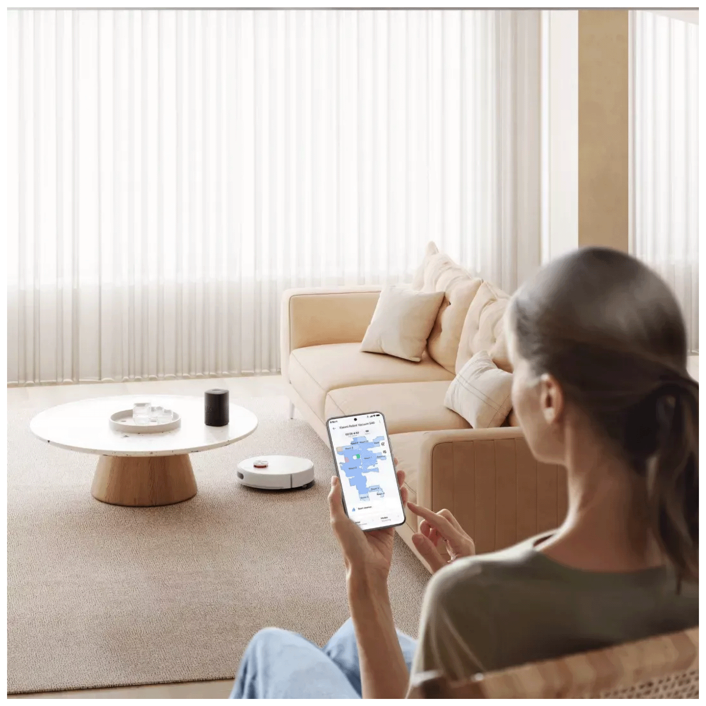 Spajanjem robotskog usisavača na Mi Home aplikaciju, lako možete odabrati između 4 načina čišćenja, čime je omogućeno jednostavno prilagođavanje ovisno o potrebama. Pomoću aplikacije prilagodite postavke čišćenja odabirom ignoriranja tepiha ili usisavanja tepiha. Osim podešavanja načina rada, putem aplikacije omogućena je i prilagodba protoka vode u 3 stupnja, kako bi vaši podovi uvijek bili blistavo čisti.