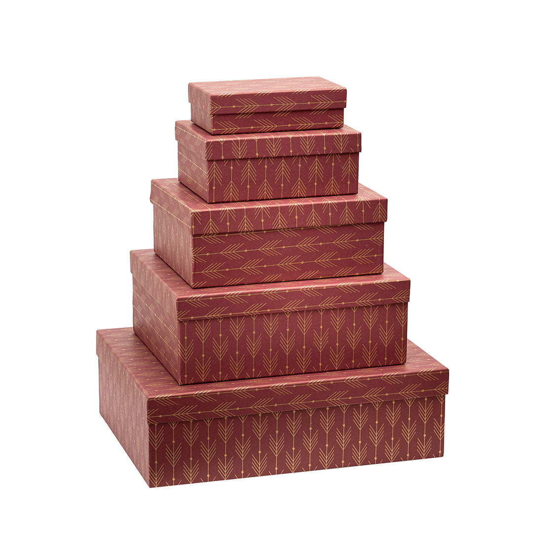 Ukrasne kutije su idealne za pakovanje pažljivo biranog poklona za dragu osobu ili poslovne partnere, zavisno od motiva koji odaberete. Bilo da je to neki šareni motiv ili ipak elegantni, nećete pogriješiti u izboru. Set sadrži 5 kutija različitih dimenzija ( 18x10x5 cm; 21x15x8 cm; 26x20x10 cm; 31x25x11.5 cm; 40x30x12 cm). Kutije su u osnovi izrađene od ljepenke debljine 1.5mm i obložene kvalitetnim papirom sa efektom zlatotiska i papirom sa teksturom.